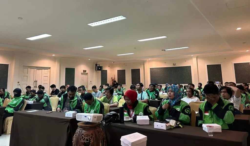 Photo 1: Gojek drivers participating in a rental program briefing held in Makassar City.
