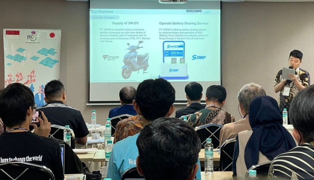 At the workshop, Rumi Hoshino, Manager of SRI, presented “Big prospect of biomass products in Indonesia” and Keisuke Tanase, Director of SGPM, presented “Battery Sharing Solution for Sustainable & Circular Smart City”.