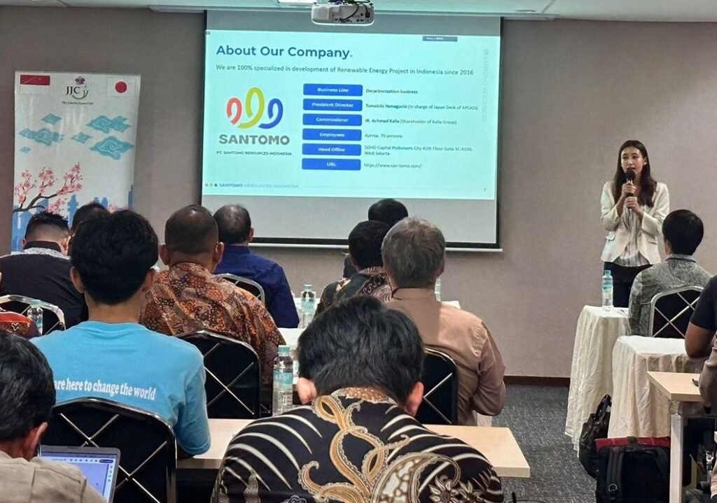 PT Santomo Resources Indonesia (Head office: Jakarta; President Director: Tomoichi Yamaguchi; hereinafter “SRI”) and PT Santomo Green Power Management (Head office: Jakarta; President Director: Shuntaro Yamaguchi; hereinafter “SGPM”) presented our biomass and BaaS projects on Tuesday, July 2, 2024, at a workshop which was held in Jakarta (Indonesia) and organized by JETRO Jakarta Office and Forum QHSE BUMN Konstruksi.
